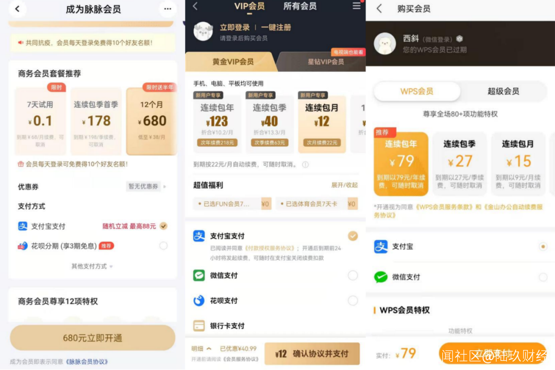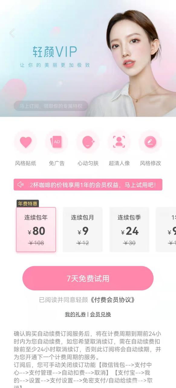 7天會員免費,首月會員0.1元,騰訊視頻、百度網盤、輕顏相機、脈脈、探探……從娛樂到工具APP,不分公司大小用户多少,有付費會員的地方,幾乎就有自動續費的問題。其中,愛奇藝、脈脈、輕顏相機、WPS等諸多軟件,在告訴用户自動續費這件事上,還是以小灰字等手段遮遮掩掩。