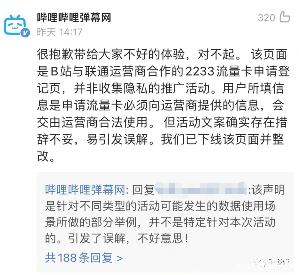 當晚,B站官方對此做出瞭解釋,意思是這份聲明並不只是針對電話卡廣告的,而是針對所有廣告的通用條約。