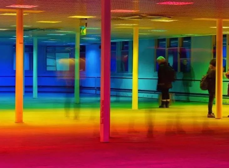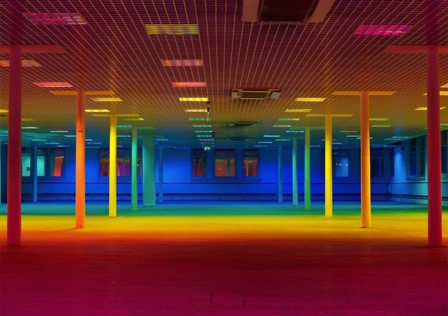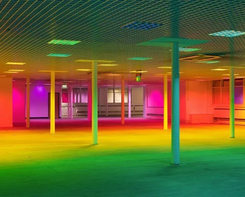 Liz West改變了建築空間,通過精心佈置的彩色影院凝膠折射光線,創造了一個生動的世界。