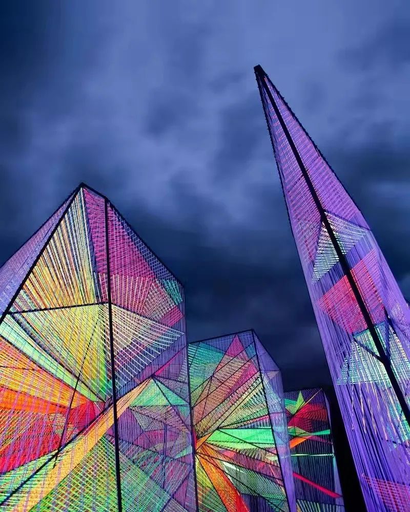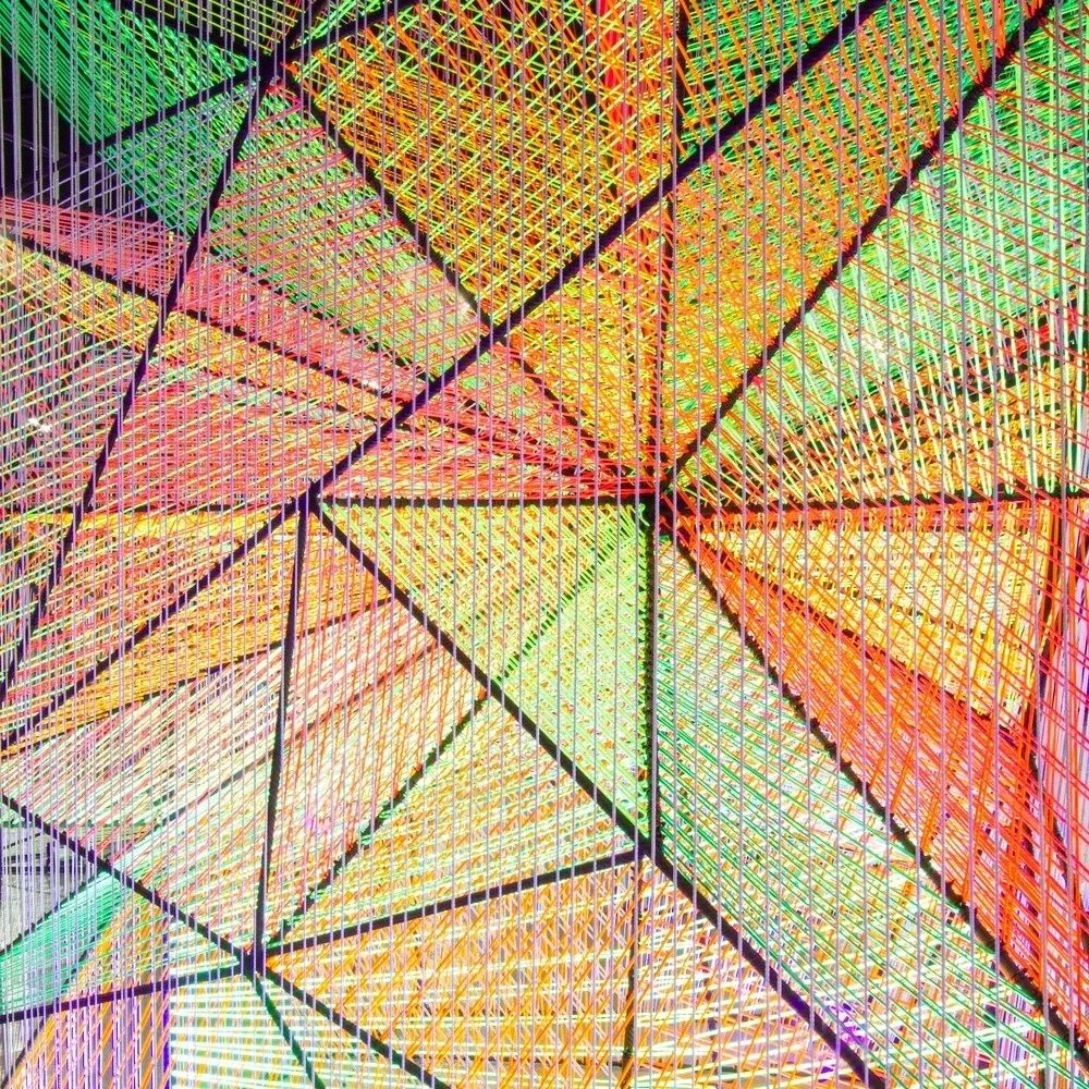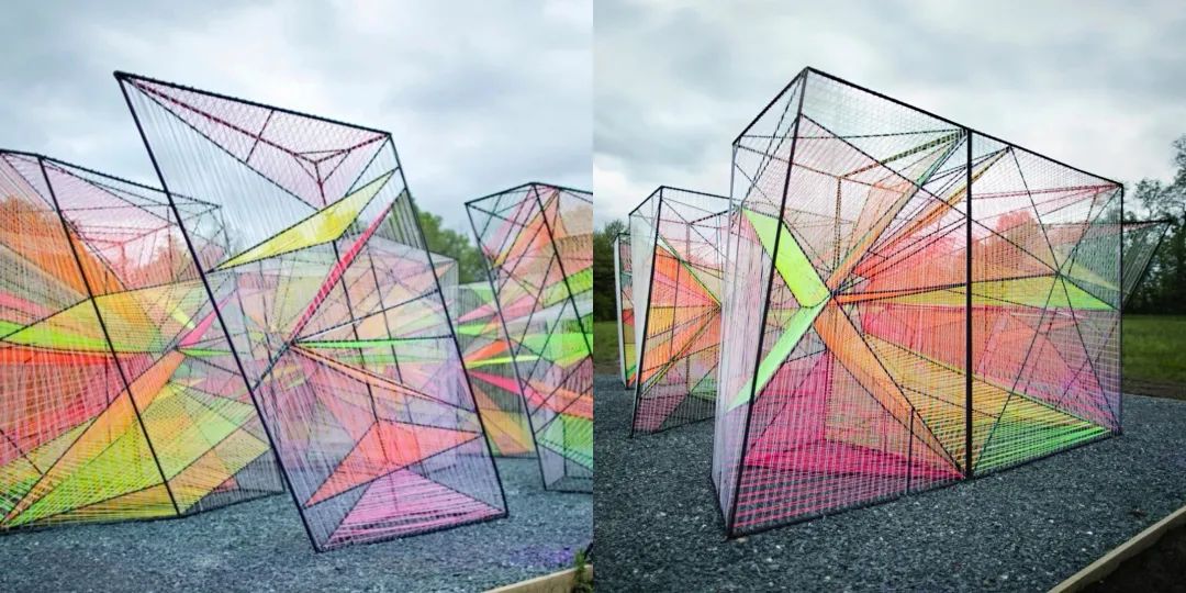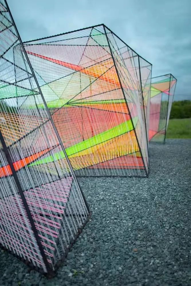 色彩斑斕的繩子在鋼筋的格柵之間編製成網,線繩之間的間隔形成半透明的效果。