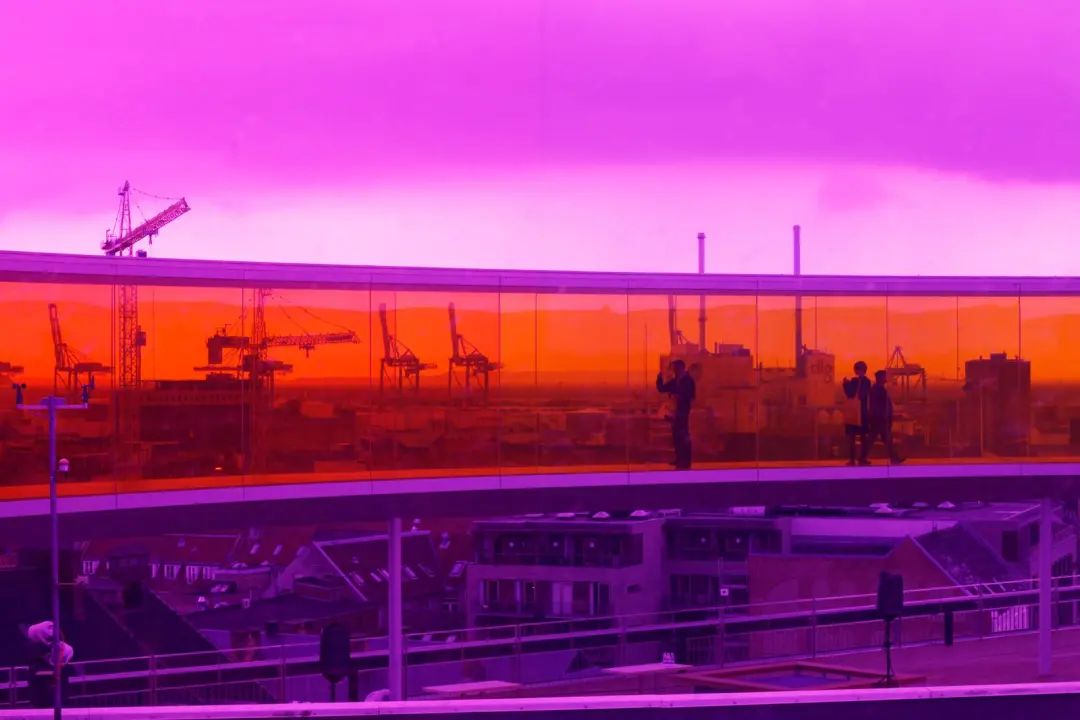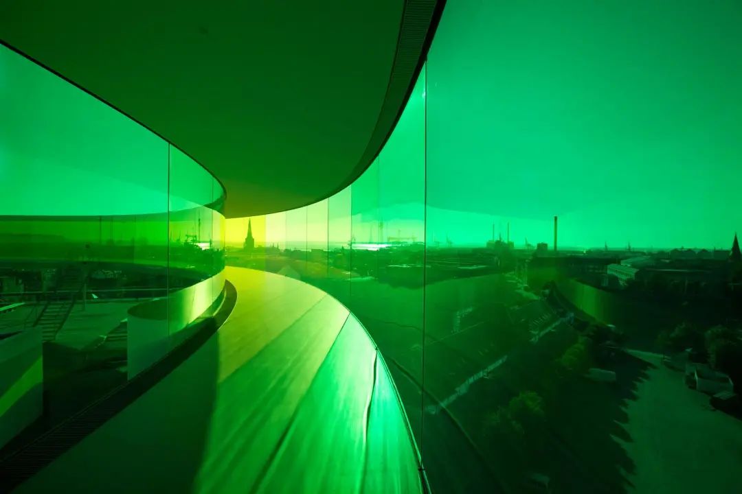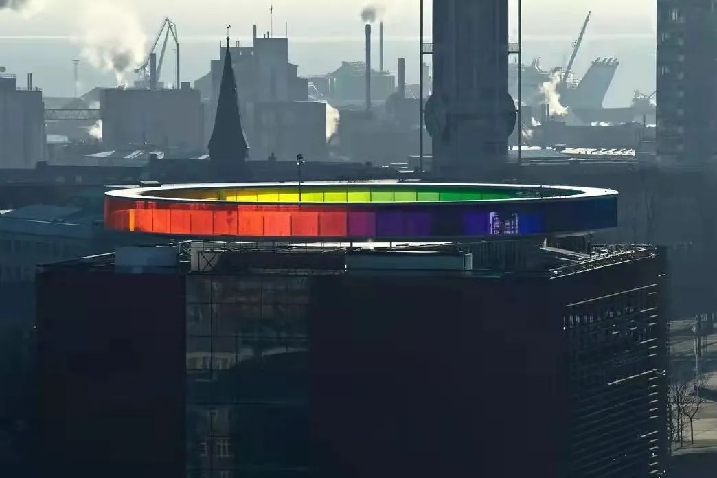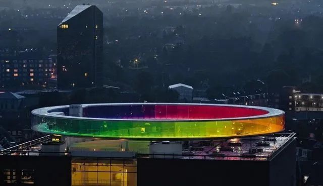 Eliasson在ARoS博物館的屋頂放置了一道150米長、3米寬的環形彩虹。