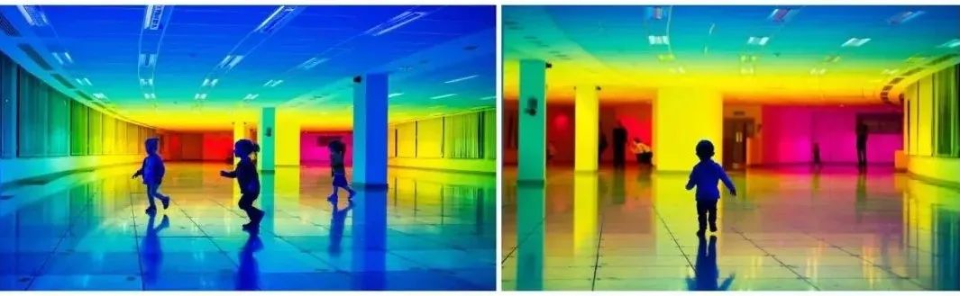 在這件作品中,參觀者會進入一種無限循環的狀態,從一種顏色慢慢過渡到另一種顏色。