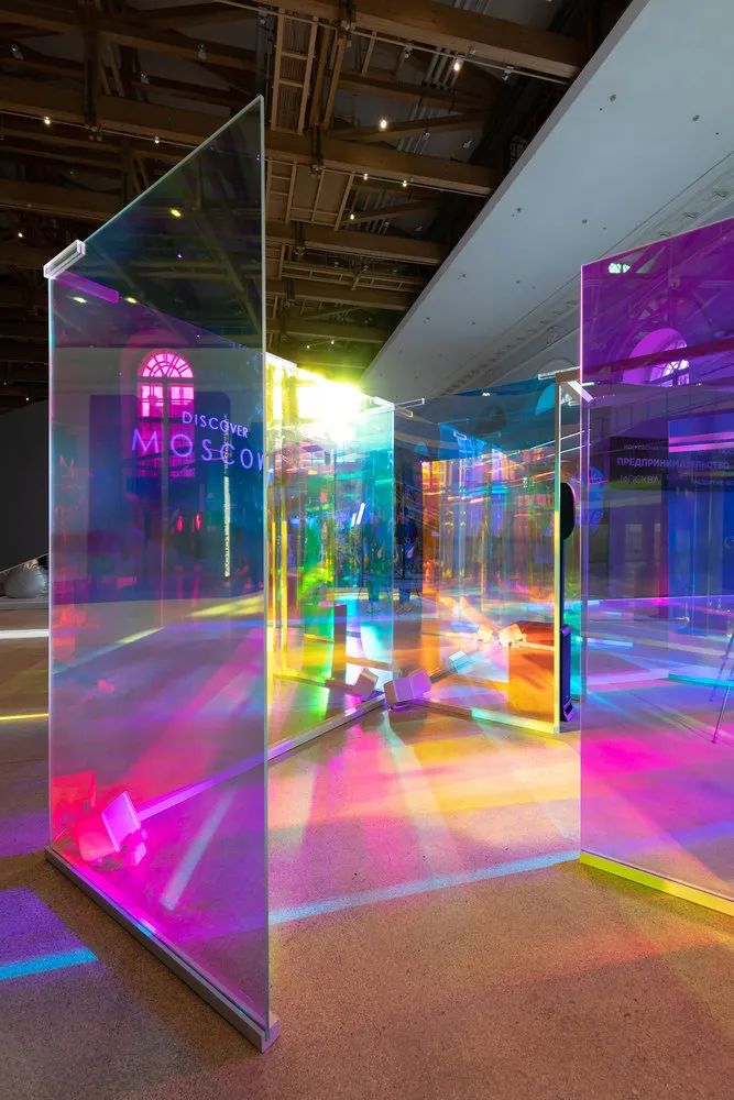 在“未來物質”的最中心,參觀者能夠通過與莫斯科的三種象徵性材料——玻璃、花崗岩和鋼鐵的互動來改變音頻環境。
