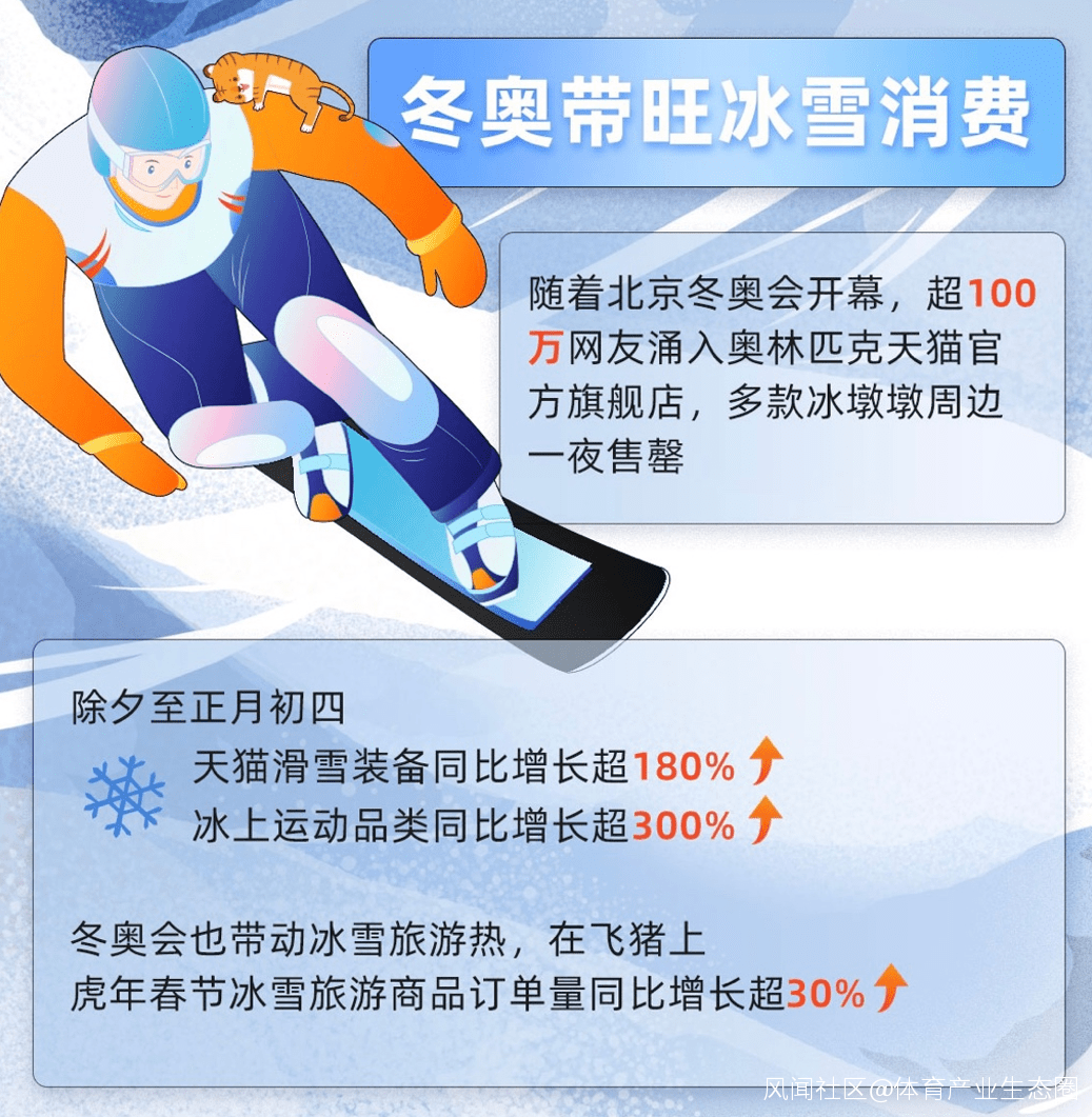 從更大的消費維度來看,火熱的冬奧也帶動了冰雪消費的高漲,據阿里巴巴發佈《虎年春節消費趨勢報告》顯示,從除夕到正月初四,天貓滑雪裝備同比增長超180%,冰上運動品類同比增長超300%。