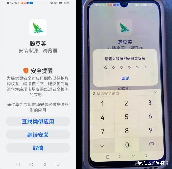 和OPPO手機存在類似情況的,在鴻蒙系統的純淨模式下,通過第三方平台下載應用還需要輸入密碼,打着安全的旗號,對自身應用商店以外的應用下載和安裝進行限制攔截,進一步限制第三方應用商店的使用。