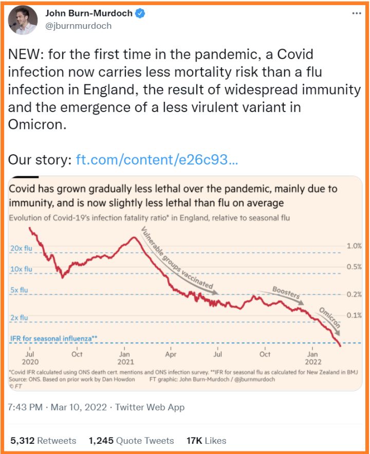 英格蘭新冠病毒感染死亡率(infection fatality rate,IFR)已經低於流感的感染死亡率了!