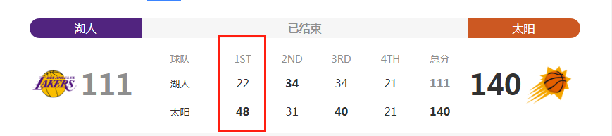 天意顯然不在湖人這邊,所以湖人投不進太陽就反擊。太陽第一節48分,其中快攻佔了17分。
