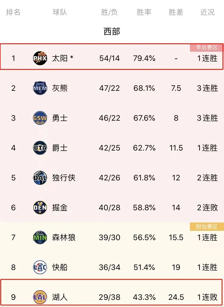 常規賽最後一個月,人家太陽提前16場鎖定季後賽,高居聯盟第一領先第二名7.5個勝場,最後大概率會以聯盟第一的戰績結束本賽季。