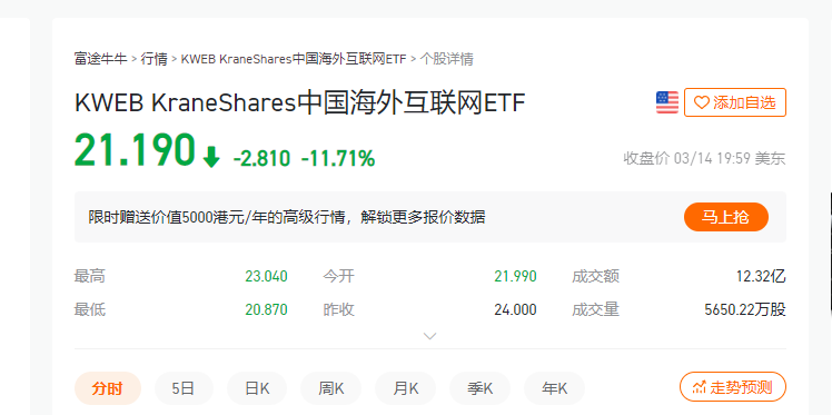 KWEB再次跌去11%,徹底在歷史跌幅紀錄上實現領跑。