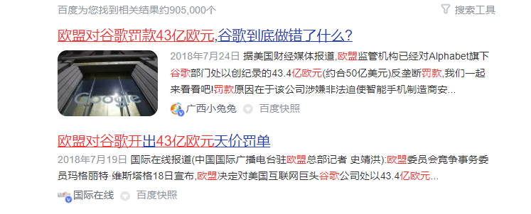 不止我們的企業,歐盟隔三岔五就要以“反壟斷”為由,罰谷歌、蘋果、FB一大筆錢。之前罰了43億歐元: