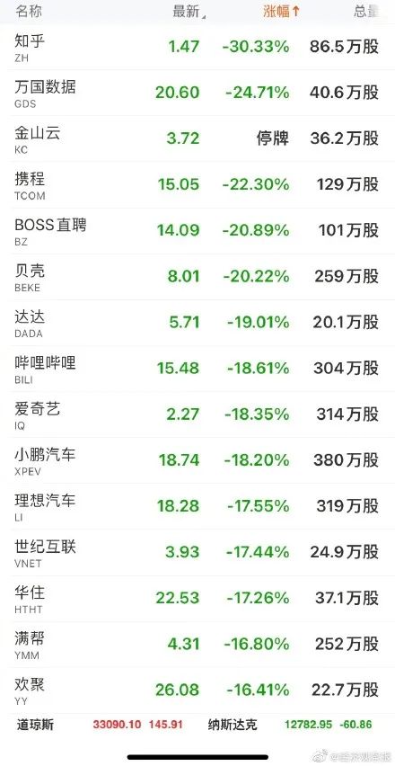 知乎跌了30%,B站跌了近20%,愛奇藝、小鵬汽車、貝殼、BOSS直聘、攜程,統統在一天時間裏跌掉了自己1/5的市值。