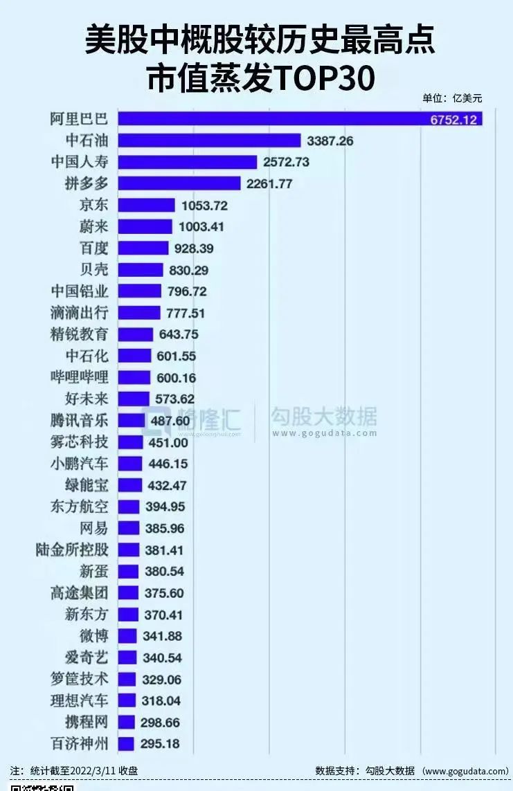 再這樣下去,可能這周結束之後,整個中概股所有股票加起來,都沒有去年年初的騰訊或者阿里市值高了。