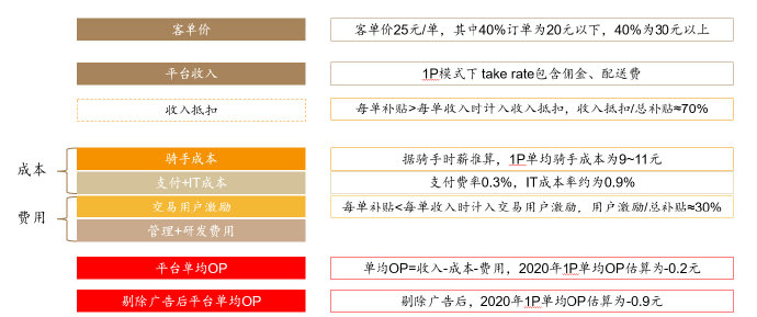 5、我們再得知:騎手送每單的成本是9-11元,每單外賣的平均經營性利潤是0元附近。