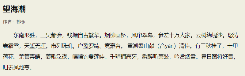 柳永的《望海潮》也是極為大氣豪邁的干謁詞,而這首詞流傳至今,也是被收錄進了高中語文課本。