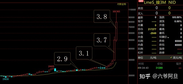 但是你不往賬户裏補錢,你的持倉就會被期貨公司強平,因為它要不給你平掉,最後損失就得由它來背。這個時候問題就來了,空頭平倉就得買多,空頭都被強平的話,實際上就相當於幾乎沒有人做空了,這個時候價格會被打到天上去,直到有成交為止。而倫敦交易所,之前並沒有漲跌幅限制,所以價格最後幹到10萬以上,也就不奇怪了。