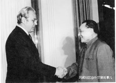 △ 1982年8月,鄧小平會見聯合國秘書長德奎利亞爾。