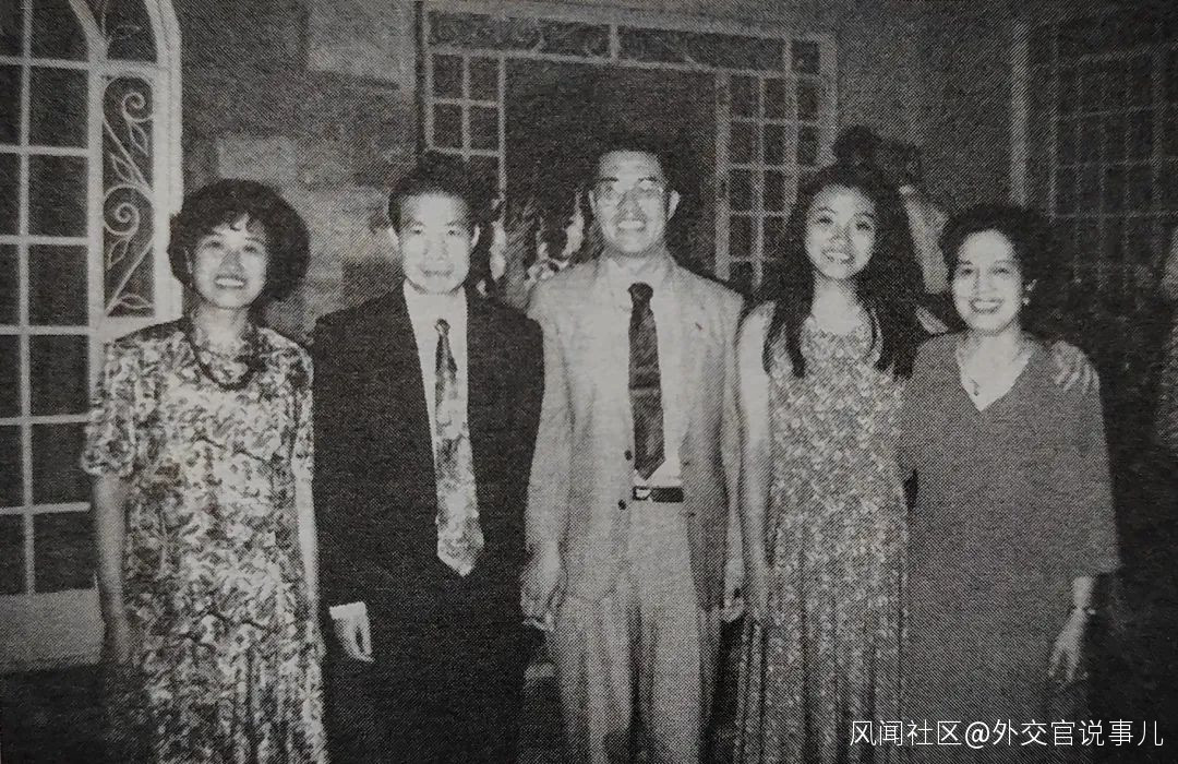 △ 1994年10月,為聯合國前秘書長德奎利亞爾看病的來自上海的周大夫(左1)及丈夫(左3)、女兒(左4)同作者夫婦合影。圖源:《走進神秘國度》