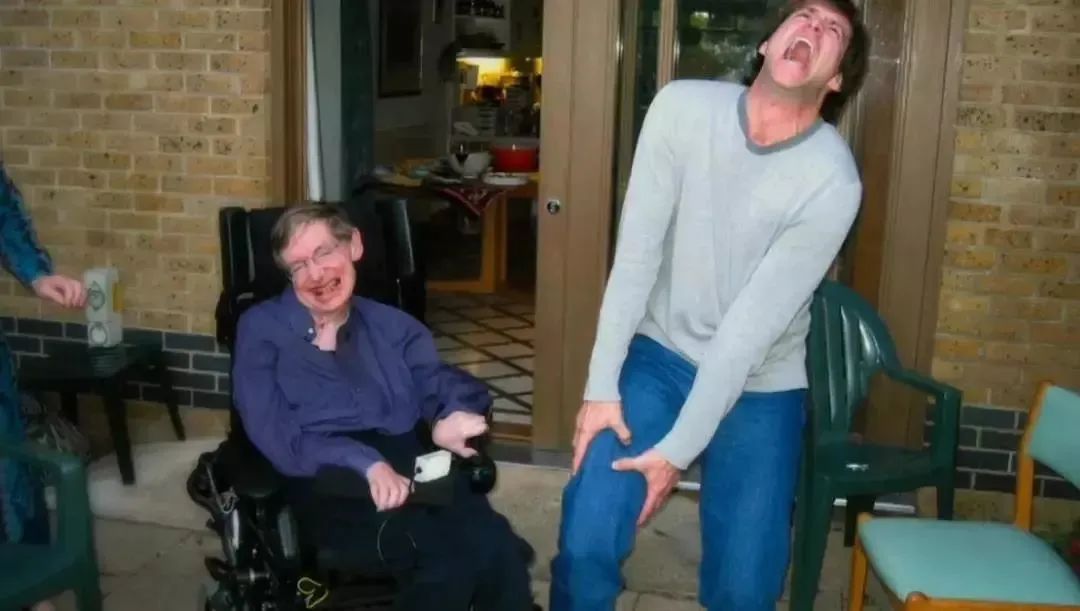 霍金開玩笑用輪椅碾金·凱瑞的腳