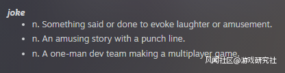 比如一些帶着諷刺的笑話,其中包括“一人團隊開發一個多人遊戲”。