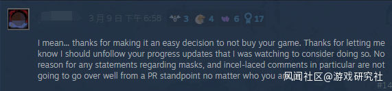 開發者在Steam更新日誌裏宣揚反口罩言論,使遊戲獲“多半差評”_風聞