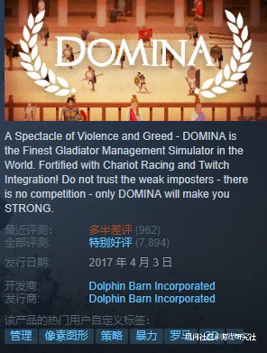 作為一款獨立遊戲,Domina從上線至今收穫了近7000多條評論且總評價為“特別好評”。國內玩家對其評價也很高,評測中頻繁有人呼籲“需要中文”。