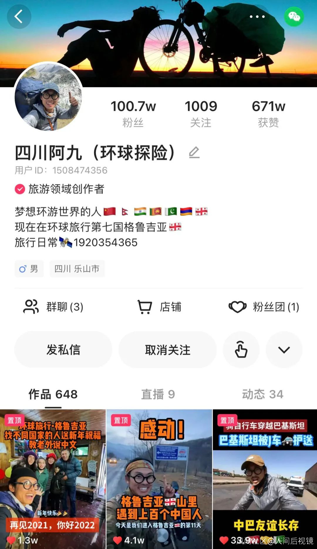 去年春節有集五福的活動,半個月,阿九漲了40萬粉絲,睡一覺起來就有幾萬個新增粉絲,搜索春節旅遊,第一個出來的就是他。還有一次發了巴基斯坦的美食,一次漲了30萬粉絲。每次漲粉絲,阿九就特別高興,騎車都有勁兒。