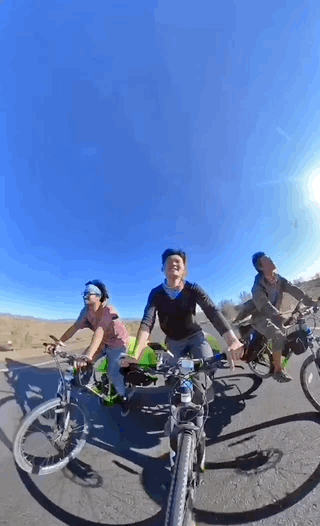 整個2020年後半年,路上遇到了好風景,湖是大哥,大哥先拍,然後是阿九拍,最後才是四兒。他們拍視頻很認真,一段視頻要反反覆覆各個角度拍好幾遍,怎麼也得半個小時。“他們倆慢悠悠地拍,我就一個人坐旁邊喝點兒酒,”四兒不怎麼拍視頻,“一路上花時間拍視頻,好不容易準備扎帳篷了,又拍夕陽。”他覺得騎車那種純粹的快樂沒有了,很多事情變了。三個人睡到快中午才起牀,收了帳篷出發騎車,一直騎到晚上七八點,找地方搭帳篷。“騎車六七個小時,得有三四個小時是拍視頻。”四兒説,每天晚上,湖和阿九都要直播到凌晨,所以只能中午出發。