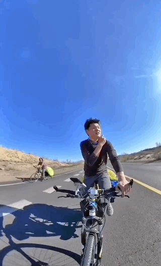 第二天起來,上廁所都站不直,馬上要癱在地上了。“大爺大媽都能騎,我有什麼不能的?”湖和四兒從不相互鼓勵,只相互嘲諷,你是不是不行?你慫了就是軟蛋。倆人誰也不服輸,又堅持騎了一天。到第三天,已經騎出去200公里了,就算回去還車,也得騎200公里,於是還是向前。就這樣堅持了半個月。