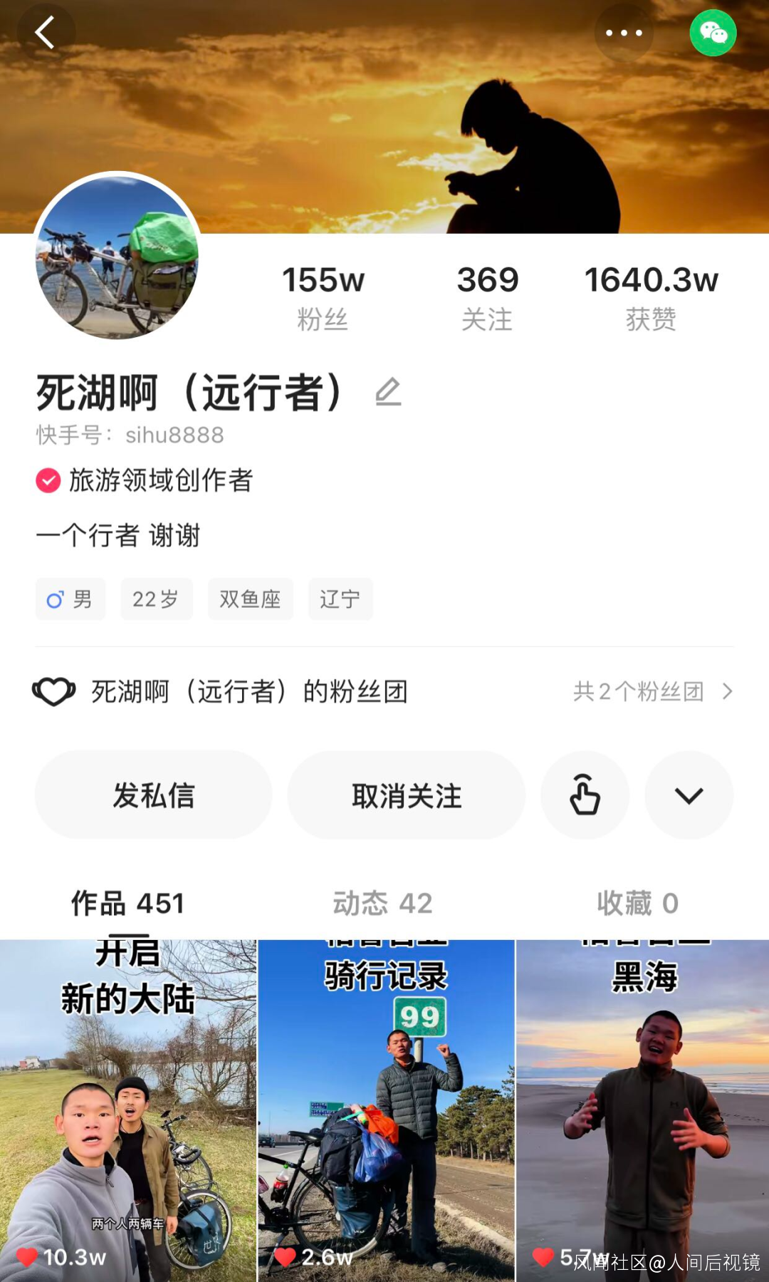 把騎行視頻發在快手上,湖擁有了150萬粉絲。