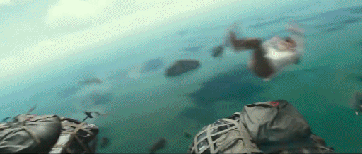 全片開頭,是主角一行人在飛機上隨貨物甩出,在半空中打鬥。