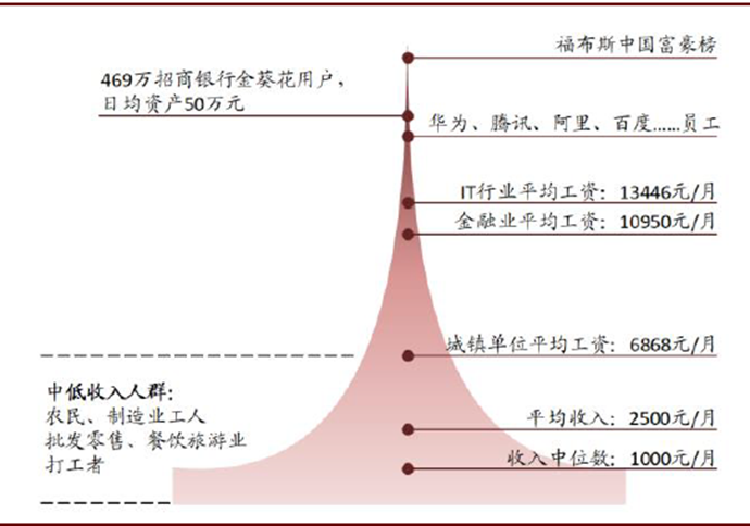 這個收入金字塔,不那麼均衡,更準確的描述是,一個圖釘。