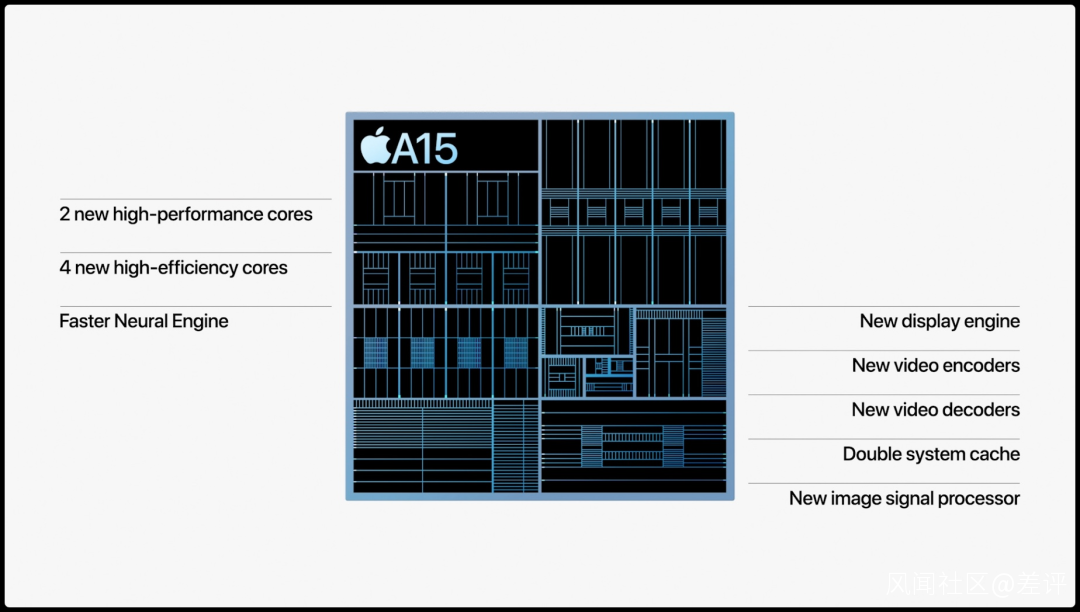 咱就拿蘋果 A15 處理器來説吧,實際上裏面除了處理器( CPU )之外,還有顯卡( GPU )、DSP,影像處理器( ISP ),無線基帶,AI 處理器( NPU ),視頻編解碼器,系統緩存等等等等。