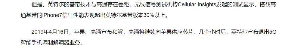 硬着頭皮用了兩年英特爾的基帶之後,因為效果實在太爛,最後又只能跟曾經鬧掰的高通重新合作,在 iPhone 裏內置高通的基帶。