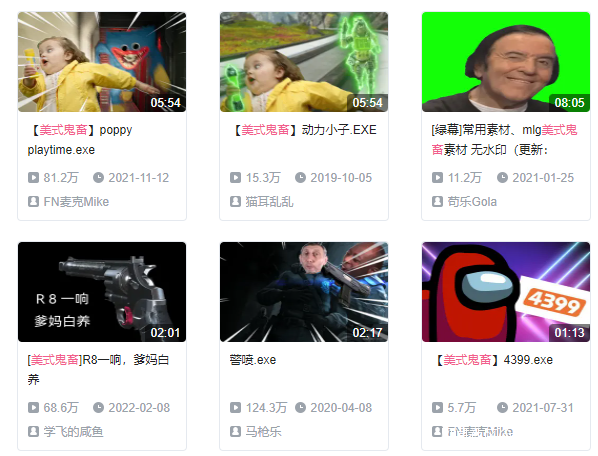 它們大部分以UP主錄製的遊戲素材為主,有可能是LOL、CS:GO、Apex等競技遊戲,也可能是其它主機遊戲或者手遊,都有人制作過美式鬼畜風格的視頻。