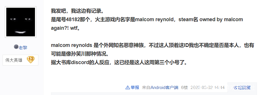 “我是必要之惡。” Reynolds在採訪裏叫囂道,“你可能會問,我是不是自己找封?我的確是。但我這麼做會毀了這個遊戲嗎?我不這麼認為,萬代南夢宮也許會修復聯機BUG吧,咱們走着瞧。”