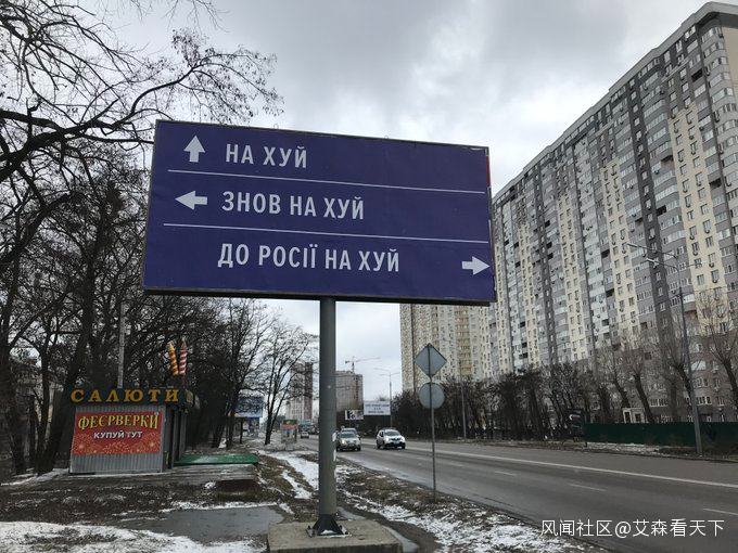 上面寫着:“前方:操自己去。左轉:再操自己。右轉:俄羅斯就是這樣操蛋。