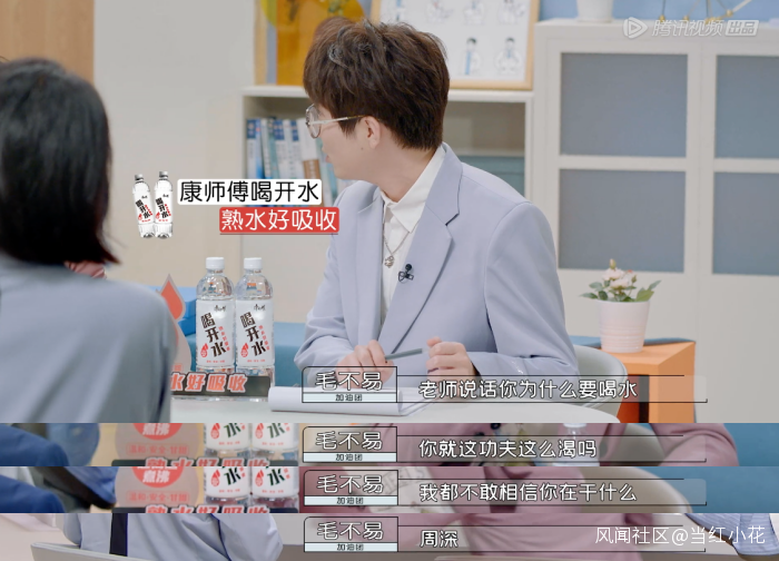 其他嘉賓在侃侃而談時,周深看沒錄自己,順手喝了口水。