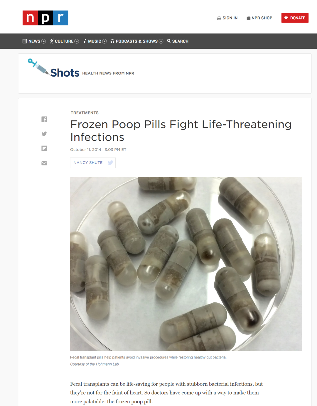 《紐約時報》所報道的由凍幹糞便製造的膠囊藥丸 圖/npr.org截圖