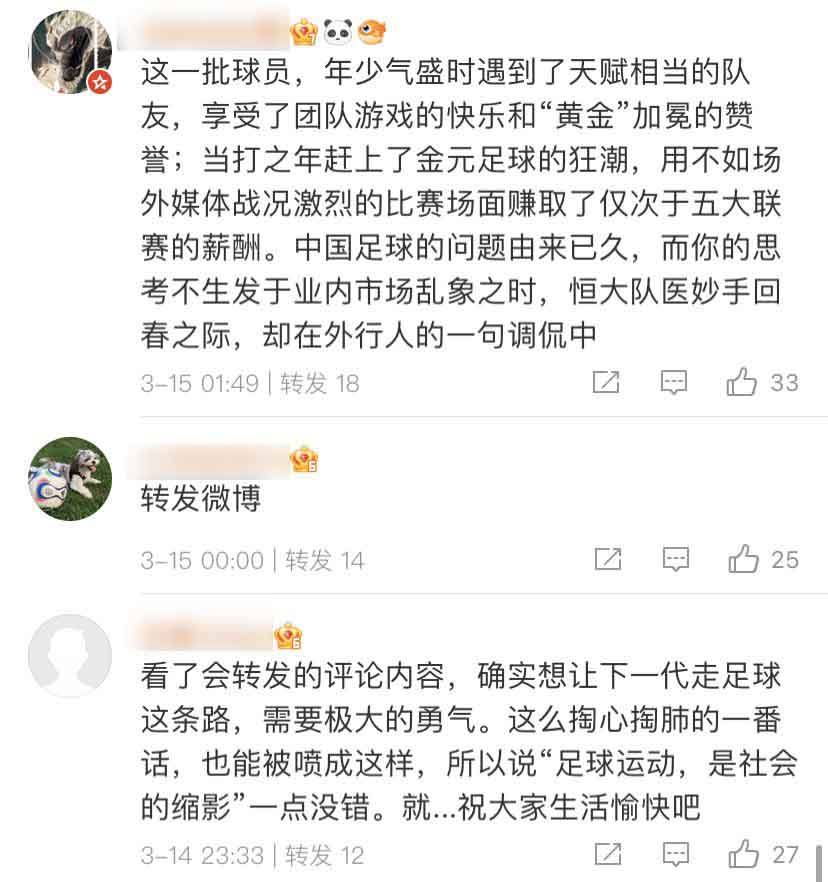 我確實快退了,很多事跟我牽扯不大,可現在00後,05後這幫踢球的少年,他們付出了10年,20年的努力,日復一日的努力和磨練,他們的未來又在哪裏?難道就躺平嗎?
