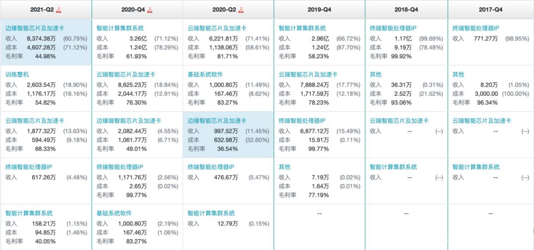 2021年上半年,該業務收入8374.38萬,佔整個營業收入60.79%。國金證券測算,2021年全年,邊緣智能芯片及加速卡業務仍貢獻超過公司一半的營收。