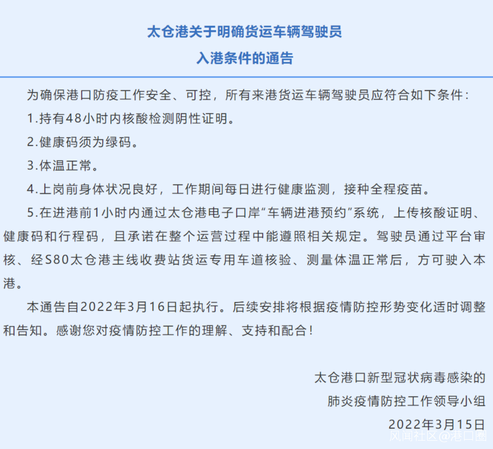 太倉港關於進一步加強貨運車輛駕駛員疫情防控管理的通告_風聞
