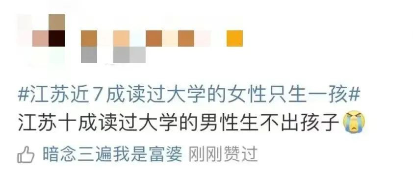 這兩天看到了一條熱搜,又又又是和生孩子相關,標題叫“江蘇近7成讀過大學的女性只生一孩”。