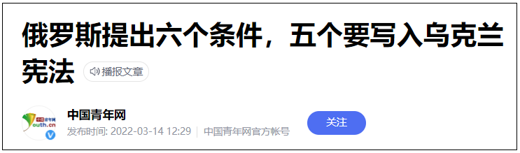我們先看俄羅斯提出的條件,共有6個(其中5個要寫入烏克蘭的憲法當中),它們分別是: