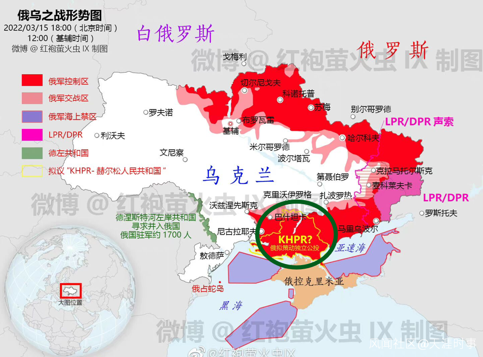 雖然現在表面上來看俄軍佔領的面積好像不大,但事實上,整個烏克蘭的南部、東部、中東部都已經在俄羅斯的控制之下了,因為有些地區根本就沒有烏軍,沒有必要浪費兵力去佔領——親俄勢力範圍內的烏軍幾乎都已經被包圍了。