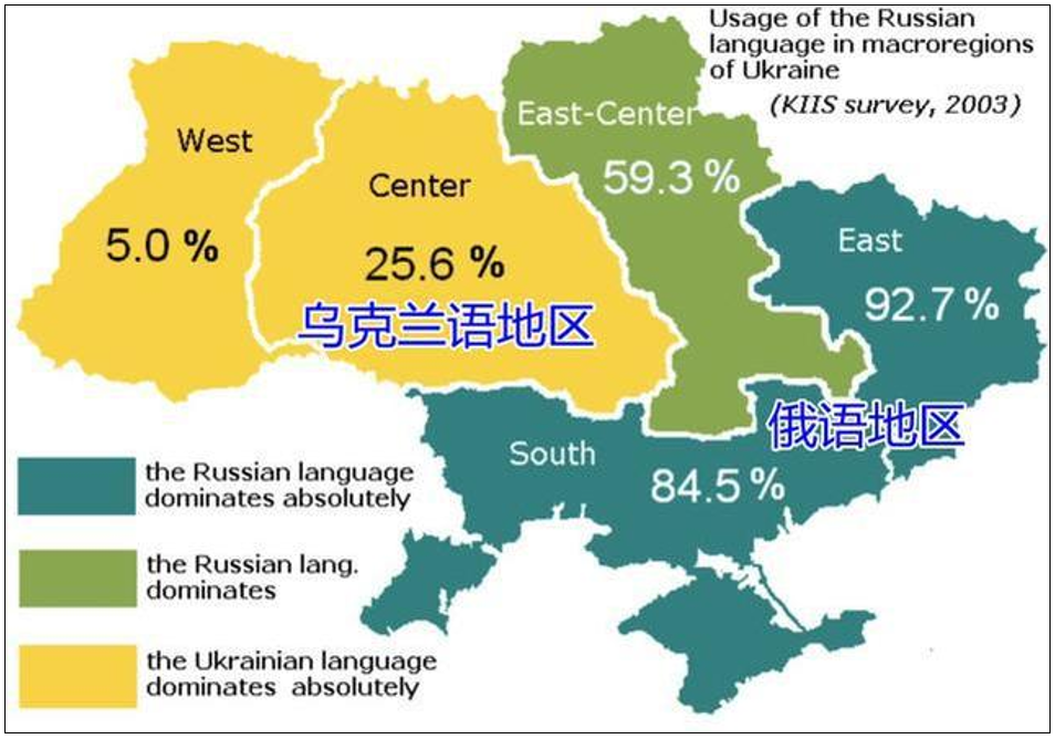 大家看下面一個圖:在烏克蘭的南部、東部和中東部都是親俄的,説俄語的比例都非常高,而****現在俄軍攻打的恰恰就是這些地區。