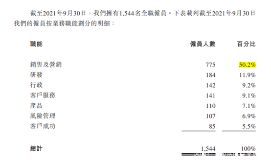 易點雲招股書顯示,報告期內,活躍客户總數分別為2.21萬家、2.86萬家以及3.7萬家;服務設備數量分別為59萬台、79.8萬台以及109萬台。尤其值得關注的是,易點雲業務模式是重人力戰術,而在公司全部職員中,銷售及營銷人員佔比達到50.2%。