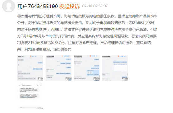 與此同時,眾多用户對於易點雲的投訴似乎也反映出公司在業務層面存在較多不規範。