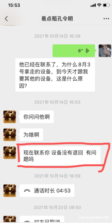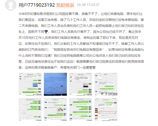還有上海用户表示,易點租內部混亂,導致電腦退還2個多月,換工作人員來騷擾威脅。