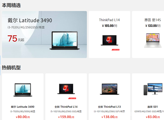 《港灣商業觀察》查詢易點雲官網顯示,其主要租賃業務為電腦、投影儀、打印機等,租賃主要品牌包括惠普、戴爾、聯想、蘋果、愛普生、松下等,租賃價格每月從40元-800元左右不等,普遍租賃價格在100-200元左右。
