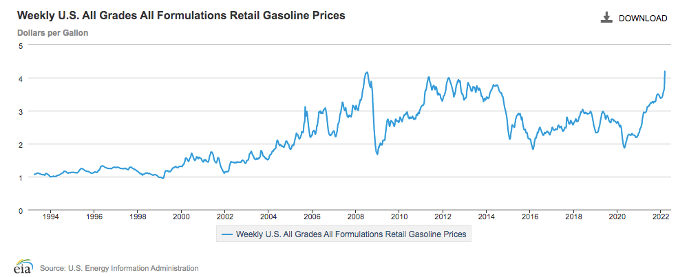 俄烏衝突以來,美國油價直線飆升,突破了2008年的最高紀錄。在13號,4.43美元一加侖又刷新紀錄了,比兩週前又漲了79美分,大約是22%。